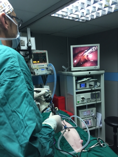 One of the very important functions of endoscope is in the area of laparoscopic surgery, or minimal invasive surgery. Unlike traditional surgery method that opens up the body cavity, we can now perform surgery for patients by cutting a very small incision of approximately 1cm in length on the skin, penetrate the muscle layer into the body. It is done by passing an advanced endoscope with light, camera, insufflation functions into the body cavity, and using special instruments with small diameter to perform the tasks we need to do. Though it may sound more appealing than normal surgery, not all kind of surgery procedures can be done in laparocopic method. Our veterinarians will give you detail information and advice if your pets should have the need.